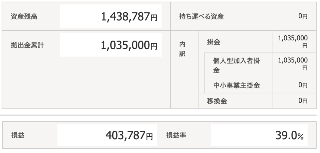 2026/4/7時点のiDeCoの状況です。